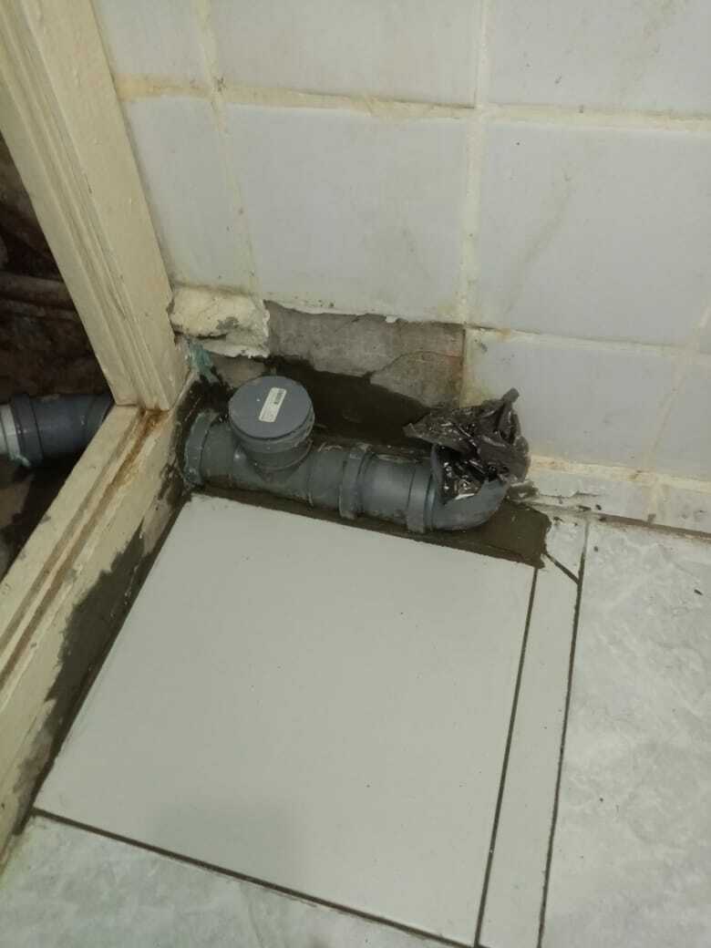 У клиентки лопнула сливная труба, сантехники все разворотили и нужно было заделать дыру в стене и положить плитку.